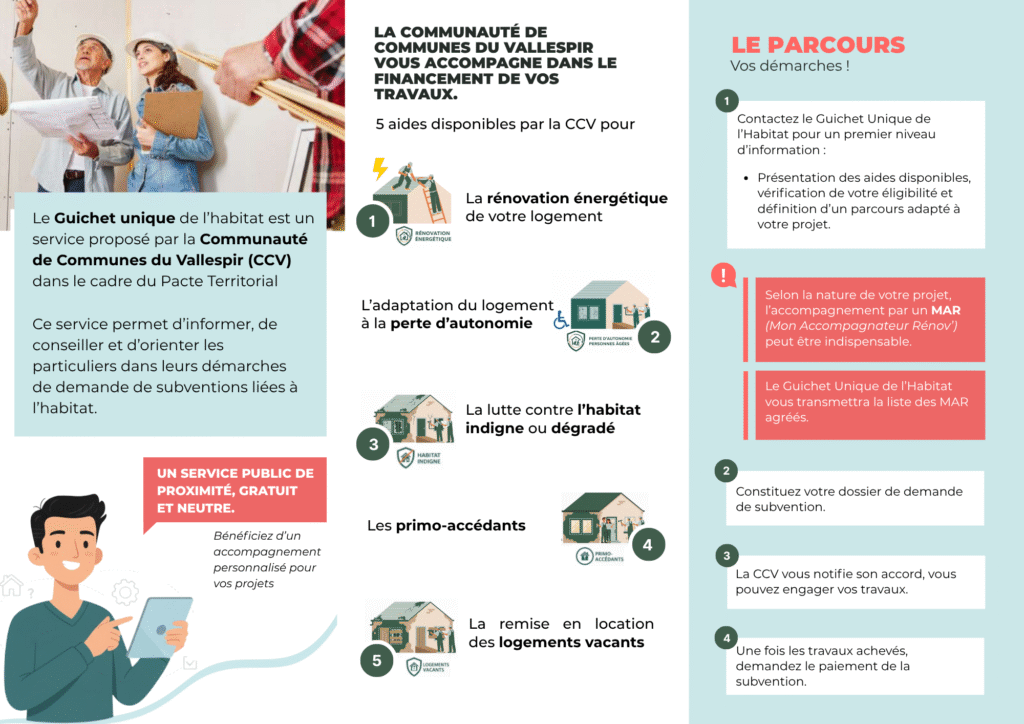 Le conseiller du guichet unique de l’habitat du Vallespir est à votre disposition pour vous informer, vous orienter et vous accompagner gratuitement dans vos demandes de subventions.