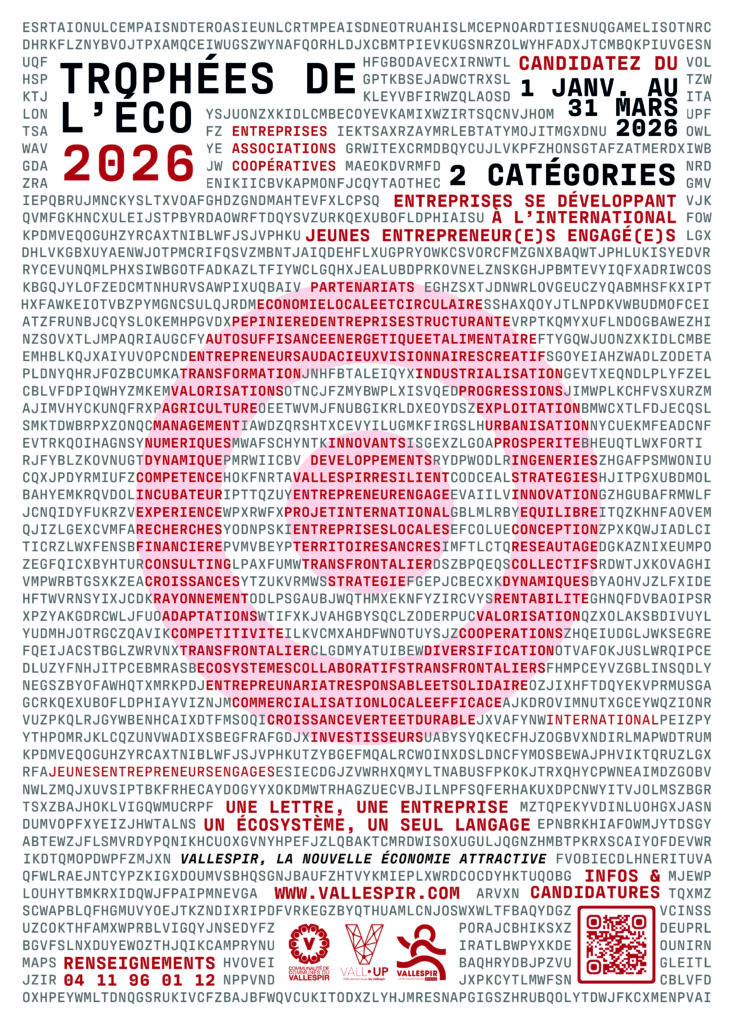 Aux entreprises du territoire — y compris sous forme associative ou coopérative — dont le siège social ou l’établissement est situé dans l’une des 10 communes de la CCV, et qui contribuent au dynamisme, à l’innovation et à l’ancrage territorial du Vallespir.